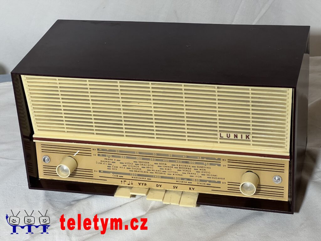 Dobová reklama nabízela rozhlasový přijímač Luník jako společníka doma, na zahradě, na chatě i při kempování. Je to takový „kočkopes“ – pro stolní přístroj chybí síťový transformátor a pro skutečně variabilní použití je stolní provedení poněkud nepraktické.